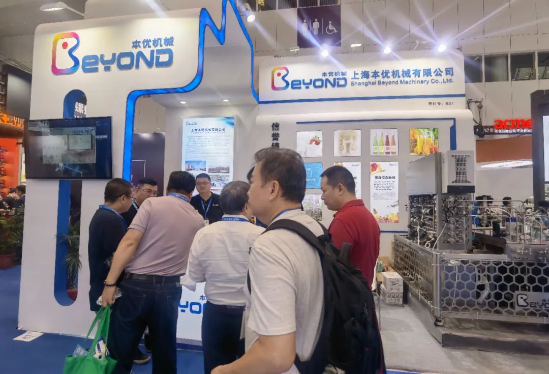 FBIF 2023重磅回归,现场盛况空前。开展期间,现场人潮汹涌。 本优团队凭借专业技术优势和高端产品性能,吸引了饮料行业众多企业的驻足咨询,本优机械展位前的参展者络绎不绝,大家积极前来洽谈合作。
