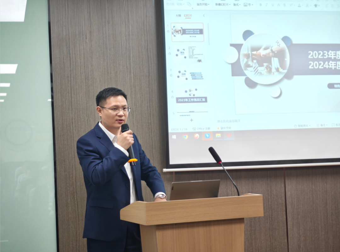 销售中心执行总监马坤茹对23年经营年度销售数据进行通报,分析了各产业的发展情况,通过数据让大家更清晰的了解了24年的蓄力方向。